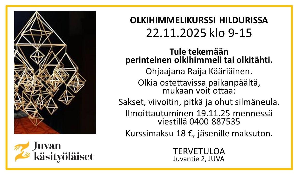 Juvan käsityöläiset ry on perustettu vuonna 1986 ja 40 vuoden kunniaksi on päätetty seuloa yhdistyksen historiikki digitaaliseen muotoon. Saimme EU:n maaseuturahoitusta SavonLuotsi Leader ry:stä nuoren palkkaamiseen historiikkiaineiston kokoamiseen ja digitointiin. Aineisto on manuaalisesti eri lähteissä ja se tulee koota, lajitella ja taltioida digitaaliseen muotoon aikajärjestykseksessä. Hankkeen aikataulu on touko-elokuu 2025 Juva. Tavoite on, että Juvan käsityöläisten historia-aineisto saadaan sellaiseen muotoon, että sitä voidaan työstää myöhemmin kirjaksi.